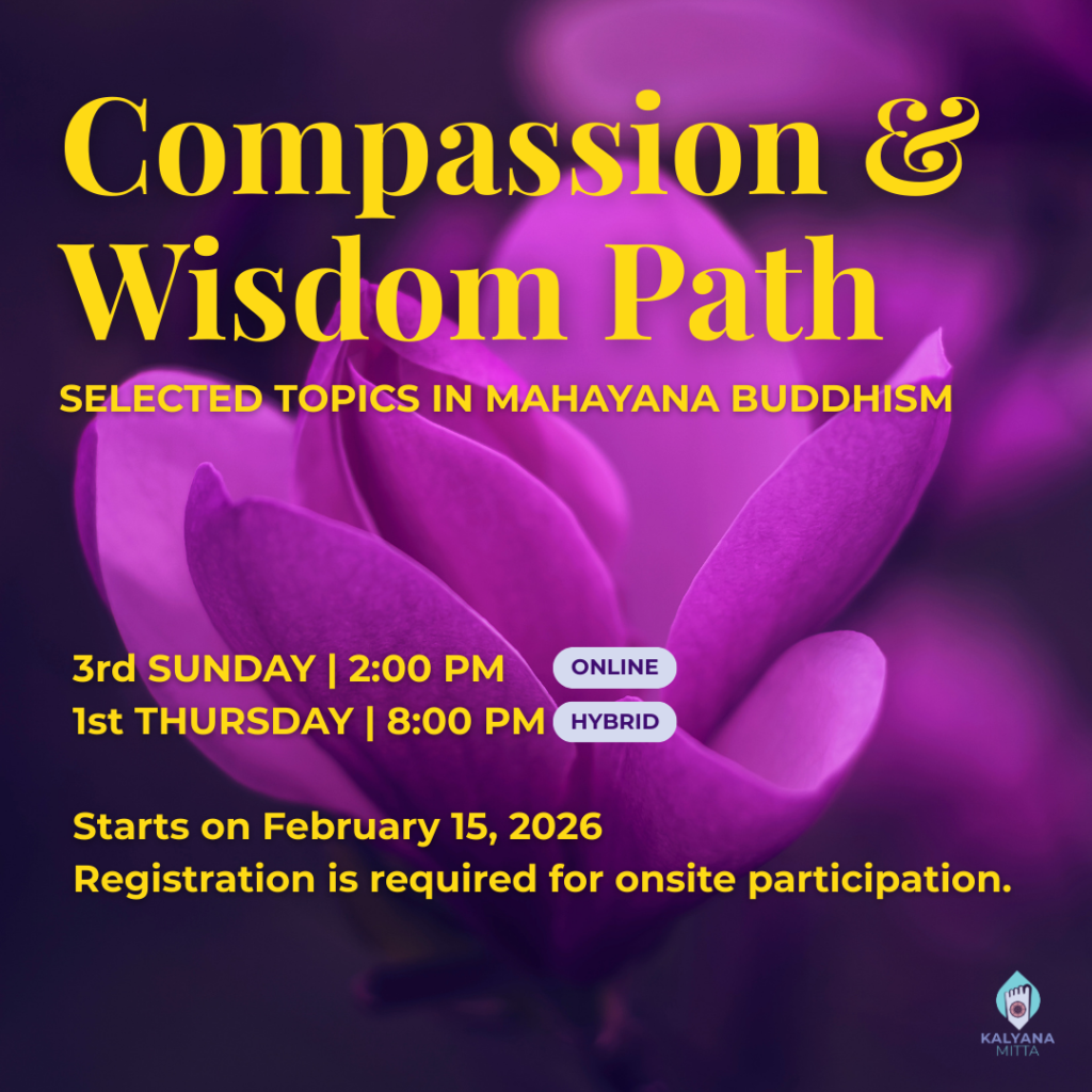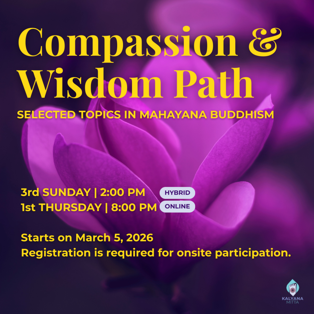 In this group study, we will explore concise overviews of key Mahāyāna topics to taste the richness and practical relevance of the Buddha’s teachings in daily life, while appreciating the ingenuity and upāya-kauśalya (skillful means) of Dharma teachers across the centuries.